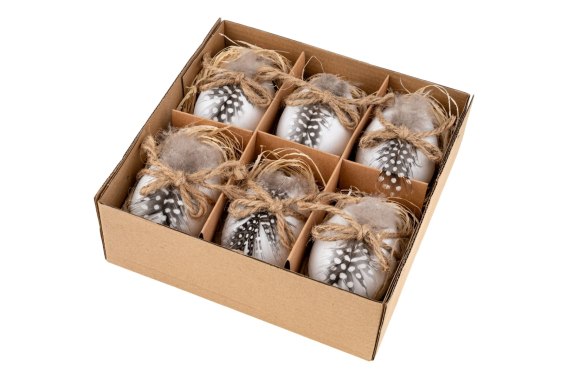 Jajka plastikowe gęsie 8cm kolor biały z dekoracjami 6szt. WPJ-0185