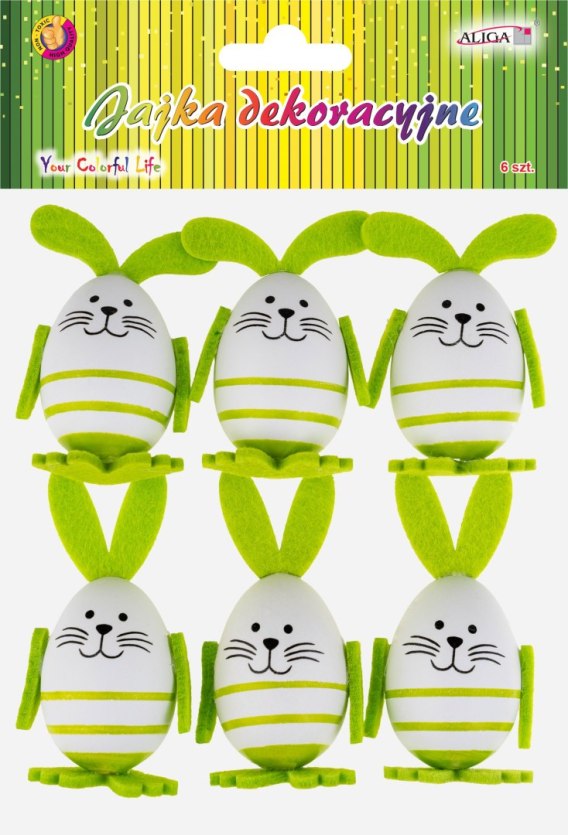 Jajka plastikowe wielkanocne króliczki z zawieszką 8cm op. 6szt. WPJ-9769
