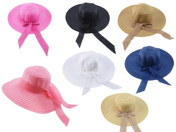 Kapelusz damski z wstążką w kropki