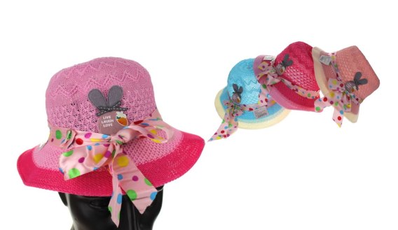 Kapelusz dziewczęcy KOKARDA W GROCHY mix kolor 27 CM SN54231