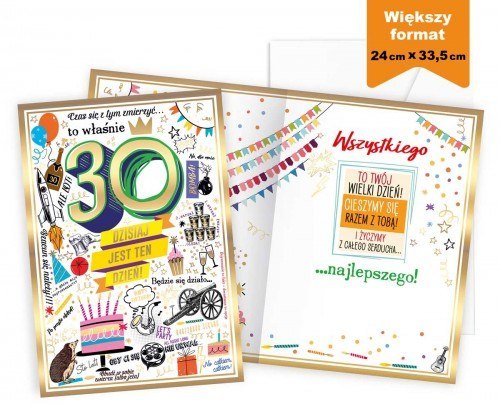 Karnet 30 urodziny mega duży 33x27cm P-038