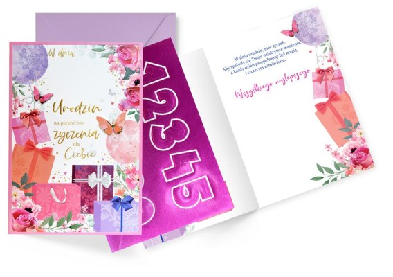 Karnet Urodziny wymienne cyfry, damskie DK-1224