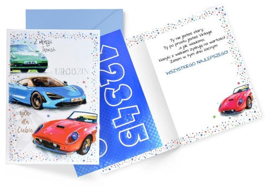 • Karnet Urodziny wymienne cyfry, samochody DK-1227