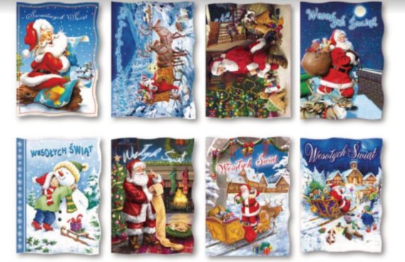 Karnet + koperta 25szt. z brokatem BOŻE NARODZENIE
