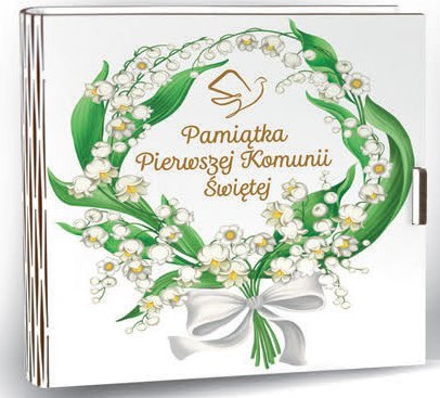 • Kasetka kwadrat (życzenia + kopertka) 16 x 16cm KOMUNIA ŚW KONWALIA