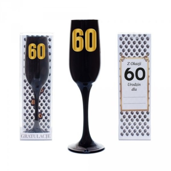 Kieliszek urodzinowy do szampana czarny w ozdobnym opakowaniu - Z Okazji 60 Urodzin dla...