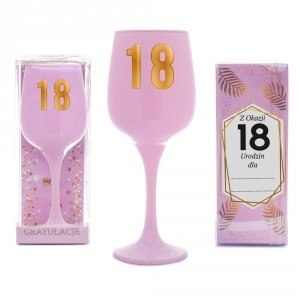 Kieliszek urodzinowy do wina różowy w ozdobnym opakowaniu - Z Okazji 18 Urodzin dla...