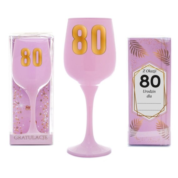 Kieliszek urodzinowy do wina różowy w ozdobnym opakowaniu - Z Okazji 80 Urodzin dla..