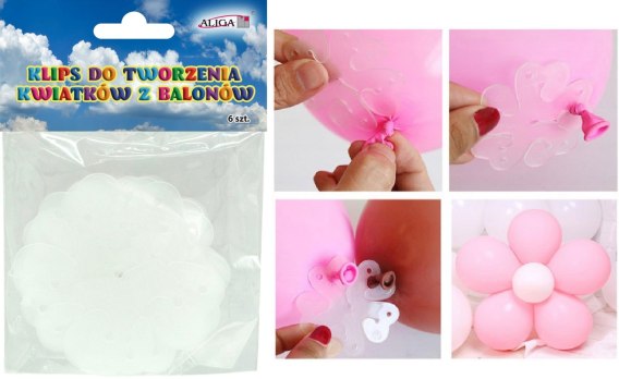 Klips do tworzenia kwiatków z balonów, op. 6 szt., śr. 8 cm. ADB-6401