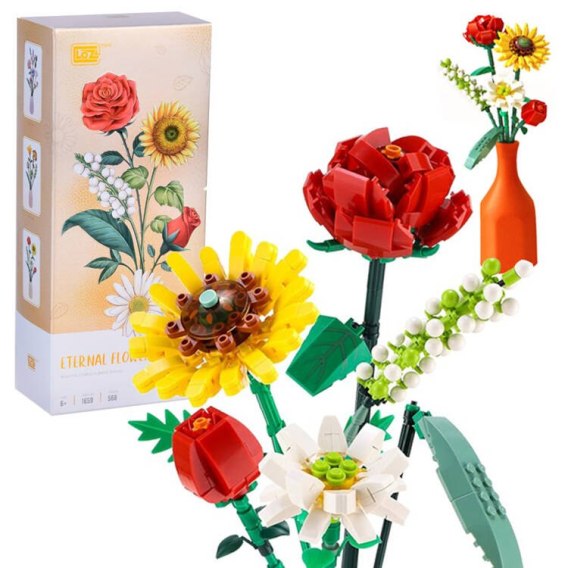 Kreatywne Klocki Konstrukcyjne: Bukiet Kolorowych Kwiatów 568 elementów.