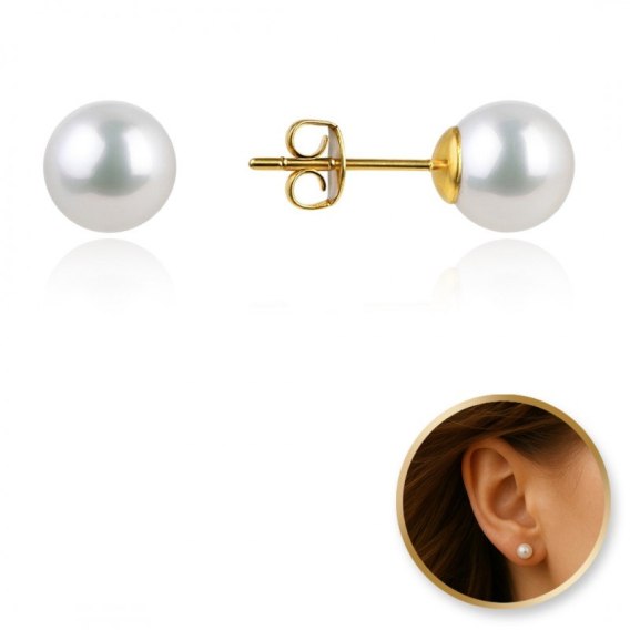• Kolczyki ze stali szlachetnej platerowane 14k złotem, sztyft, perła KST3420