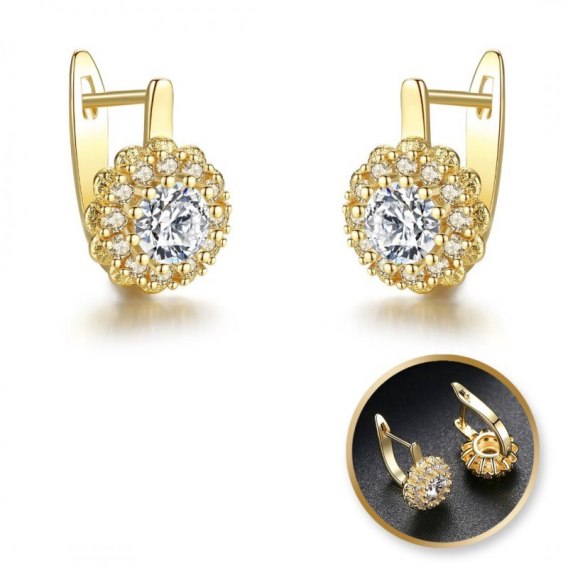 Kolczyki ze stali szlachetnej pozłacane 14k złotem, cyrkonie KST2858