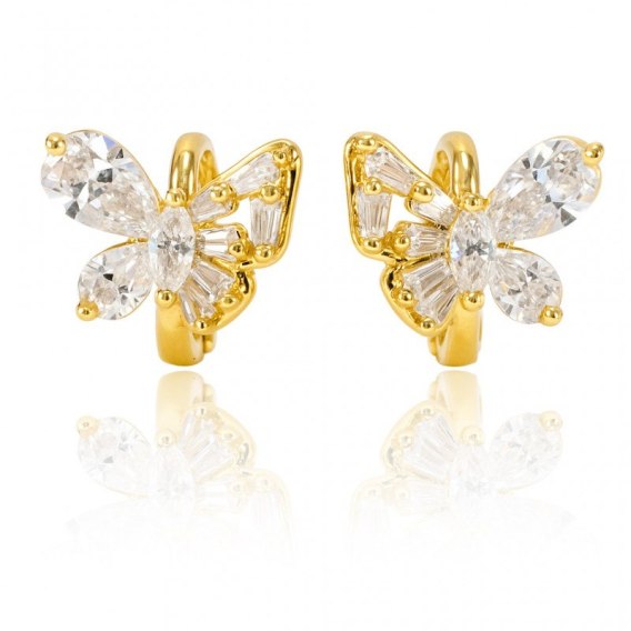 Kolczyki ze stali szlachetnej pozłacane 14k złotem, cyrkonie motylki KST3489