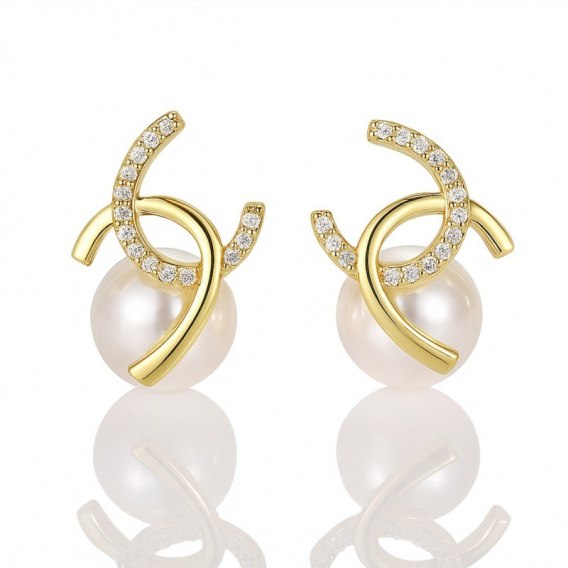• Kolczyki ze stali szlachetnej pozłacane 14k złotem, cyrkonie, perły KST3515