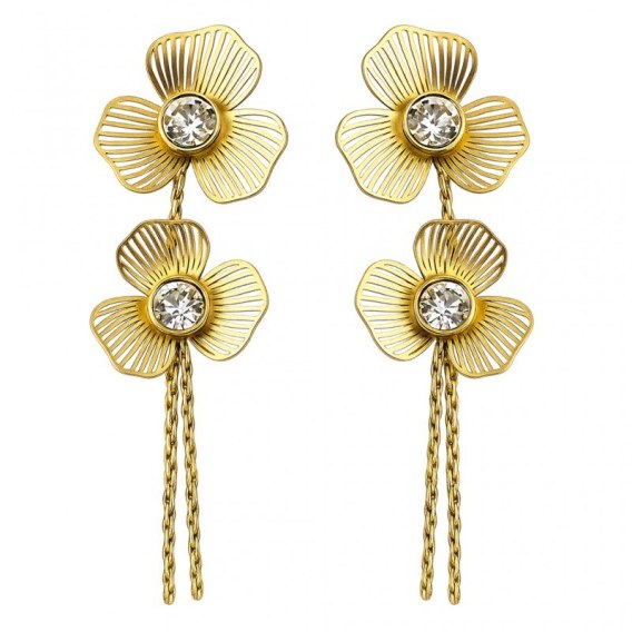 • Kolczyki ze stali szlachetnej pozłacane 14k złotem, cyrkonie wiszące kwiaty KST3451
