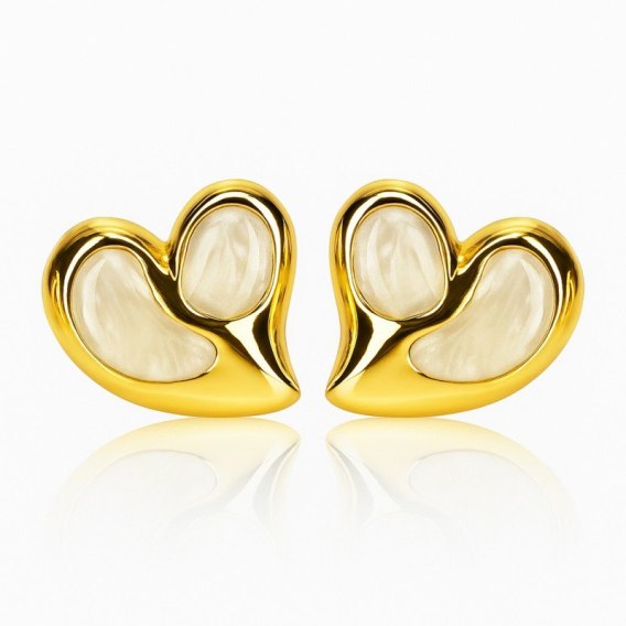 Kolczyki ze stali szlachetnej pozłacane 14k złotem, efektowne białe serca KST3481B