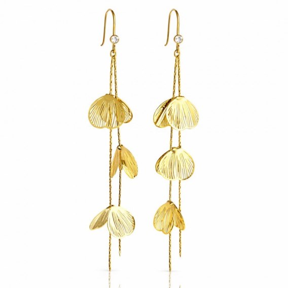 Kolczyki ze stali szlachetnej pozłacane 14k złotem, efektowne, wiszące kwiaty KST3506