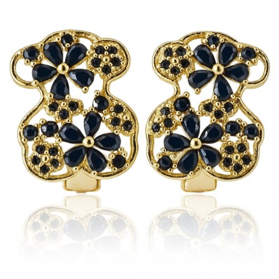 • Kolczyki ze stali szlachetnej pozłacane 14k złotem, miś z czarną cyrkonią KST3535