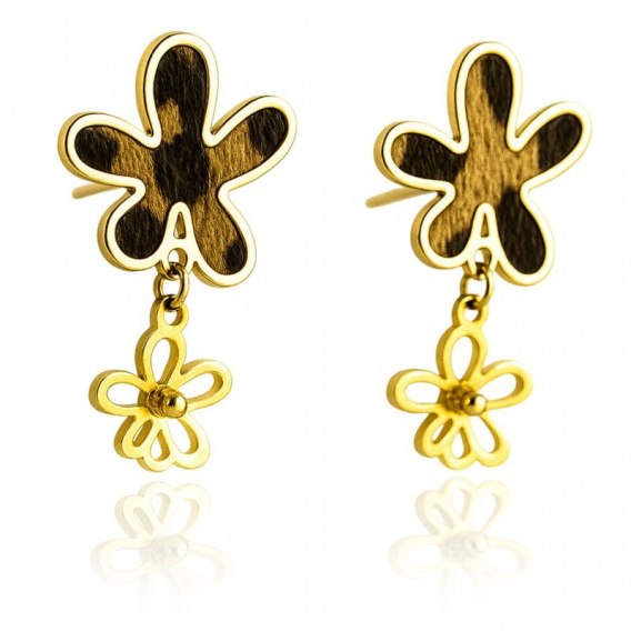 Kolczyki ze stali szlachetnej pozłacane 14k złotem, panterka i kwiaty KST3445