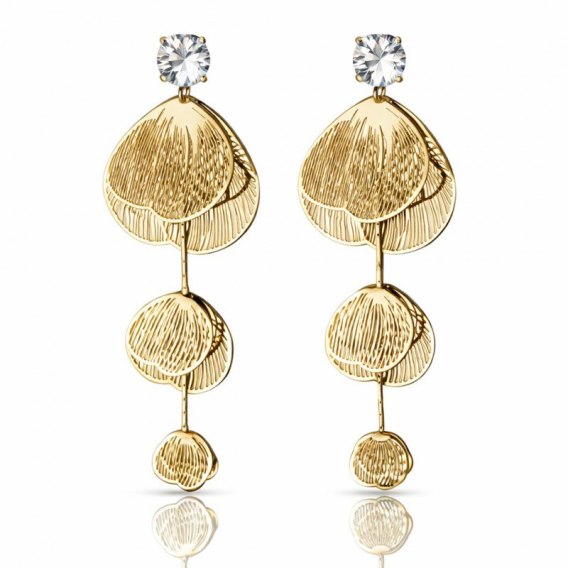 Kolczyki ze stali szlachetnej pozłacane 14k złotem, wiszące kwiaty z cyrkoniami KST3510