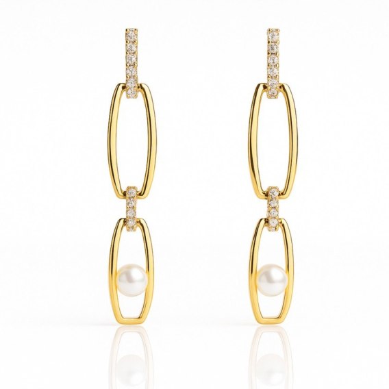 • Kolczyki ze stali szlachetnej pozłacane 14k złotem, wiszące z Perłą KST3522