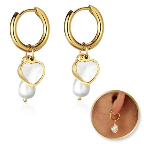 • Kolczyki ze stali szlachetnej pozłacanej 14k złotem, SERCE, PERŁA KST3319