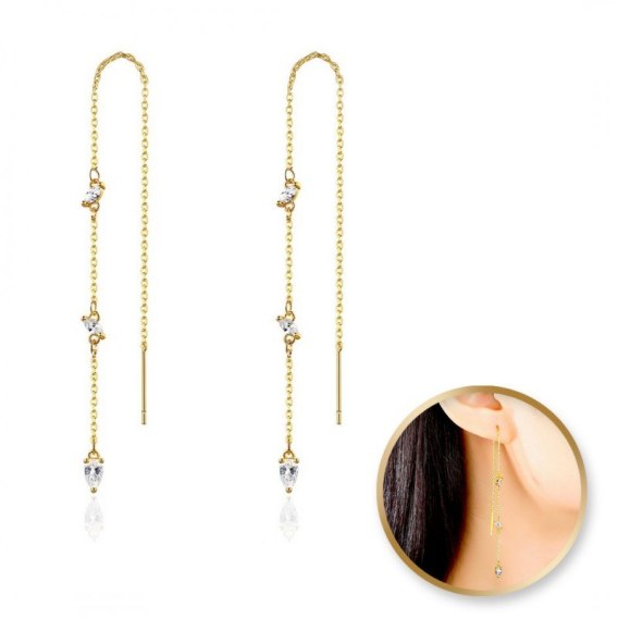 Kolczyki ze stali szlachetnej pozłacanej 14k złotem, cyrkonie, wiszące KST2852