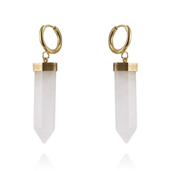 • Kolczyki ze stali szlachetnej pozłacanej 14k złotem kryształ górski KST2904B