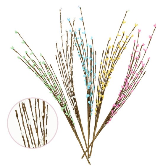 Długie kolorowe bazie to wyjątkowa dekoracja o uniwersalnym zastosowaniu. Giętkie gałązki na druciku umożliwiają tworzenie efektownych kompozycji w stroikach, wiankach lub jako ozdoby wazonów.