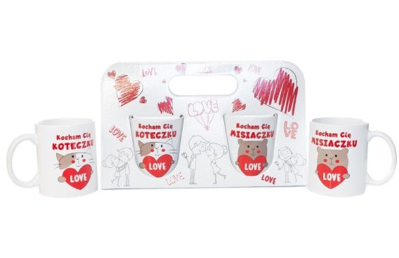 • Komplet dwóch kubków w ozdobnym opakowaniu "Kocham Cię misiaczku - Kocham Cię koteczku"