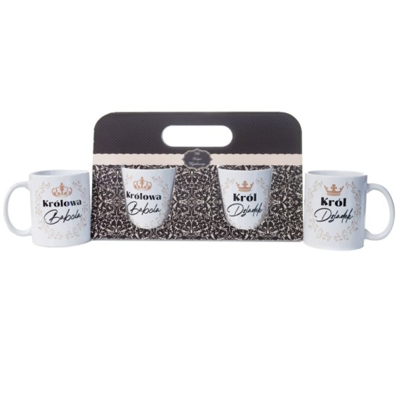 • Komplet dwóch kubków w ozdobnym opakowaniu "Królowa Babcia" "Król Dziadek"