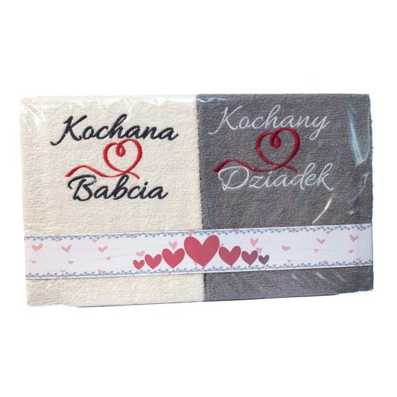 Komplet ręczników "Kochana Babcia", "Kochany Dziadek" kolor ecry -szary