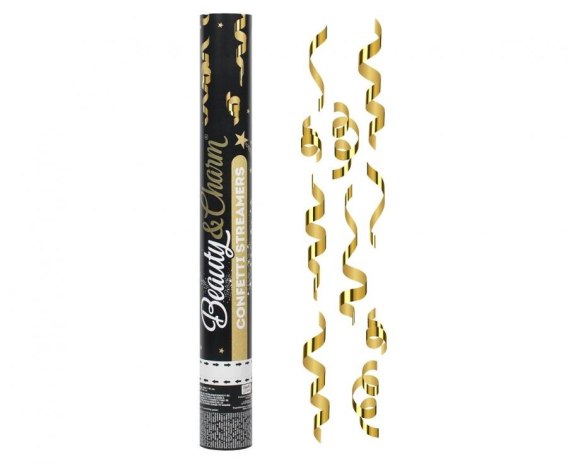 Konfetti złote serpentyny w strzelającej tubie z kolekcji premium Beauty&Charm to wyjątkowo wystrzałowa dekoracja na imprezę! Wystarczy przekręcić strzelającą tubę, a ta wystrzeli w powietrze oszałamiający deszcz złotych serpentyn! Strzelające tuby z konfetti rozkręcą każde party. Polecamy je na sylwestra, urodziny i wszędzie tam, gdzie kręci się dobra impreza.