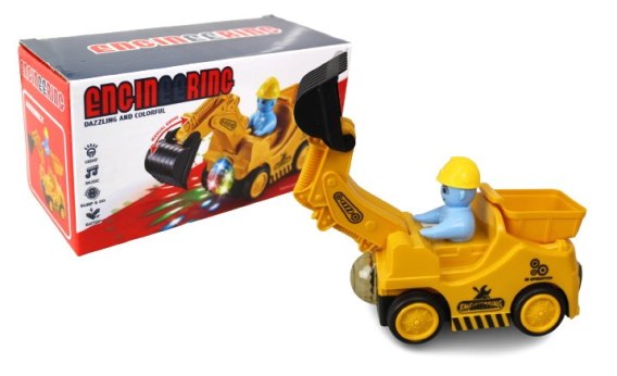 Koparka 17x13x8,5 cm wydaje dźwięki, jeździ na baterie w kartonie 20x10x9 cm CH0028