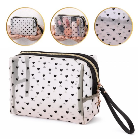 • Kosmetyczka damska transparentna czarne serca 12x18x8cm KS126