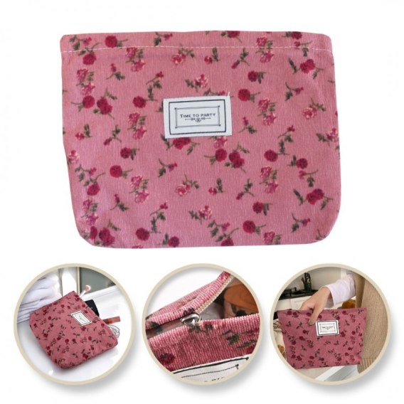 • Kosmetyczka jednokomorowa różowa w czerwone kwiatuszki 25 x 5 x18 cm KS118