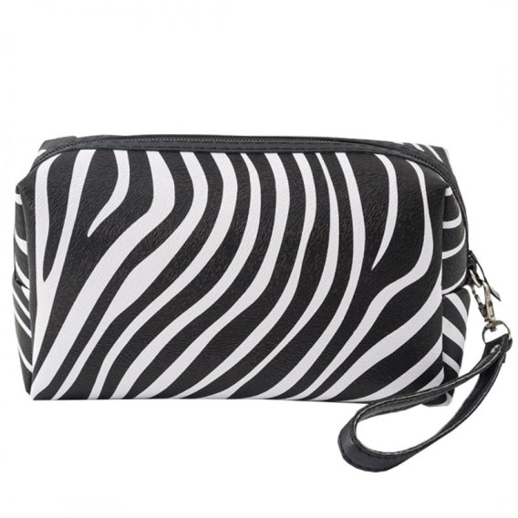 Kosmetyczka rozkładana czarna wzór zebra kuferek KS49