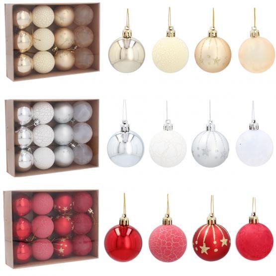 Kpl. 12 bombek choinkowych 5 cm CZERWONE, SREBRNE, ZŁOTE