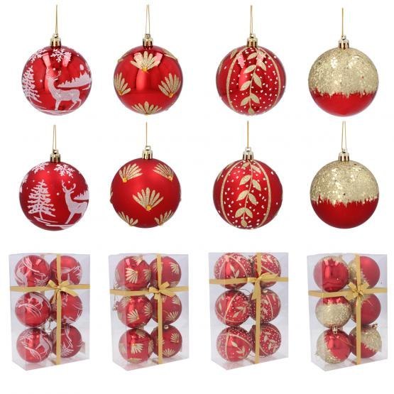 Kpl 6 bombek choinkowych 8 cm CZERWONE mix