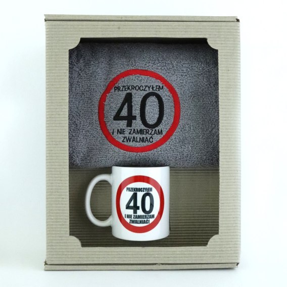 Kpl.ręcznik+kubek w pudełku ''PRZEKROCZYŁEM 40..''
