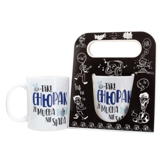 Kubek ceramiczny w ozdobnym opakowaniu "Taki Chłopak, że mucha nie siada"