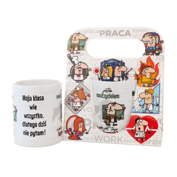 Kubek ceramiczny w ozdobnym opakowaniu z napisem "Jestem nauczycielem a jaka jest twoja supermoc?" - nauczyciel