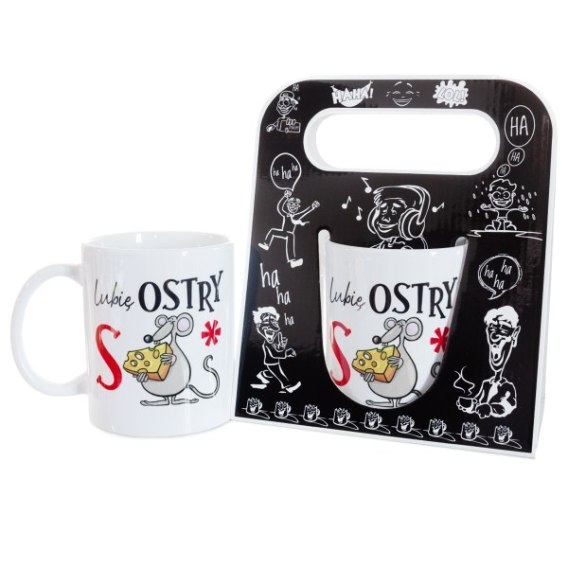 Kubek ceramiczny z napisem " Lubię ostry se*" w ozdobnym czarnym opakowaniu