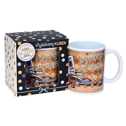 Kubek na urodziny dla mężczyzny (brązowe auto) - Wszystkiego najlepszego - 3309-UR14-WN