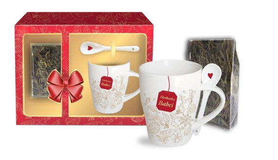 Kubek z łyżeczką 300ml + herbata - Herbatka Babci