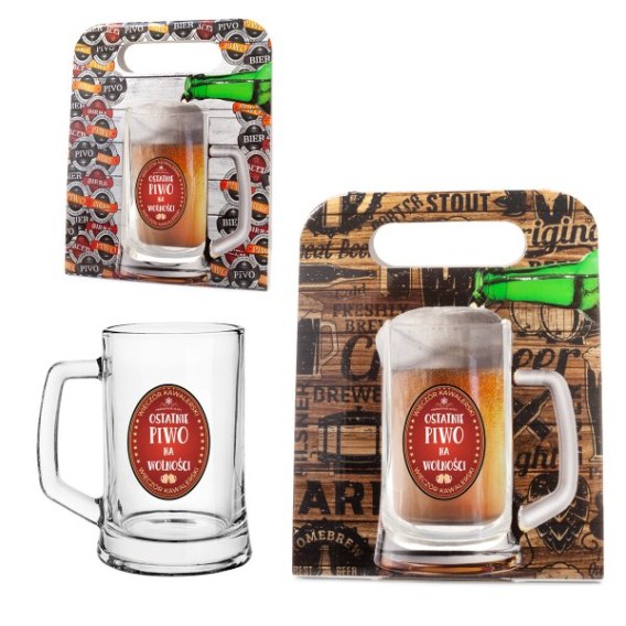 Kufel do piwa w ozdobnym opakowaniu "Ostatnie piwo na wolności" - wieczór kawalerski