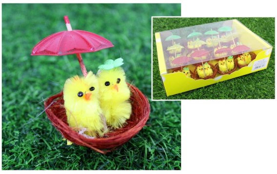 Kurczaczek wielkanocny dekoracja dwa kurczaczki pod parasolem SWA-15120-S