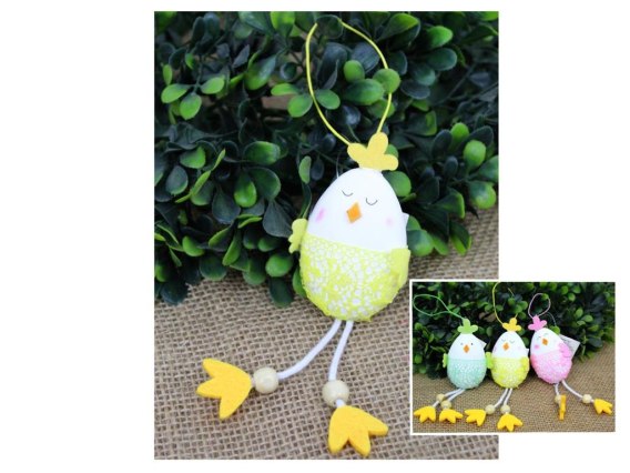 Kurczak 12szt wielkanocny w kształcie jajka z zawieszką 13x5 cm mix kolor BAR-22112