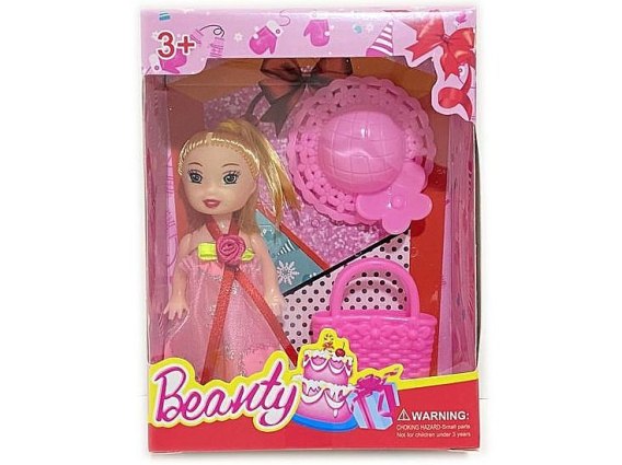 Lalka mini 7cm z kapeluszem i torebką 14x10x4cm,