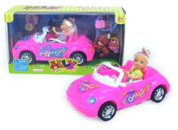 Auto 20cm z lalką 10cm z pieskiem oraz z torebką i grzebieniem .